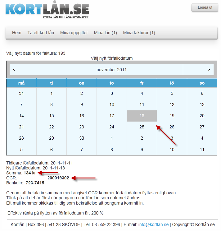 för den relevanta fakturan och väljer sedan vilket betaldatum du vill ha.